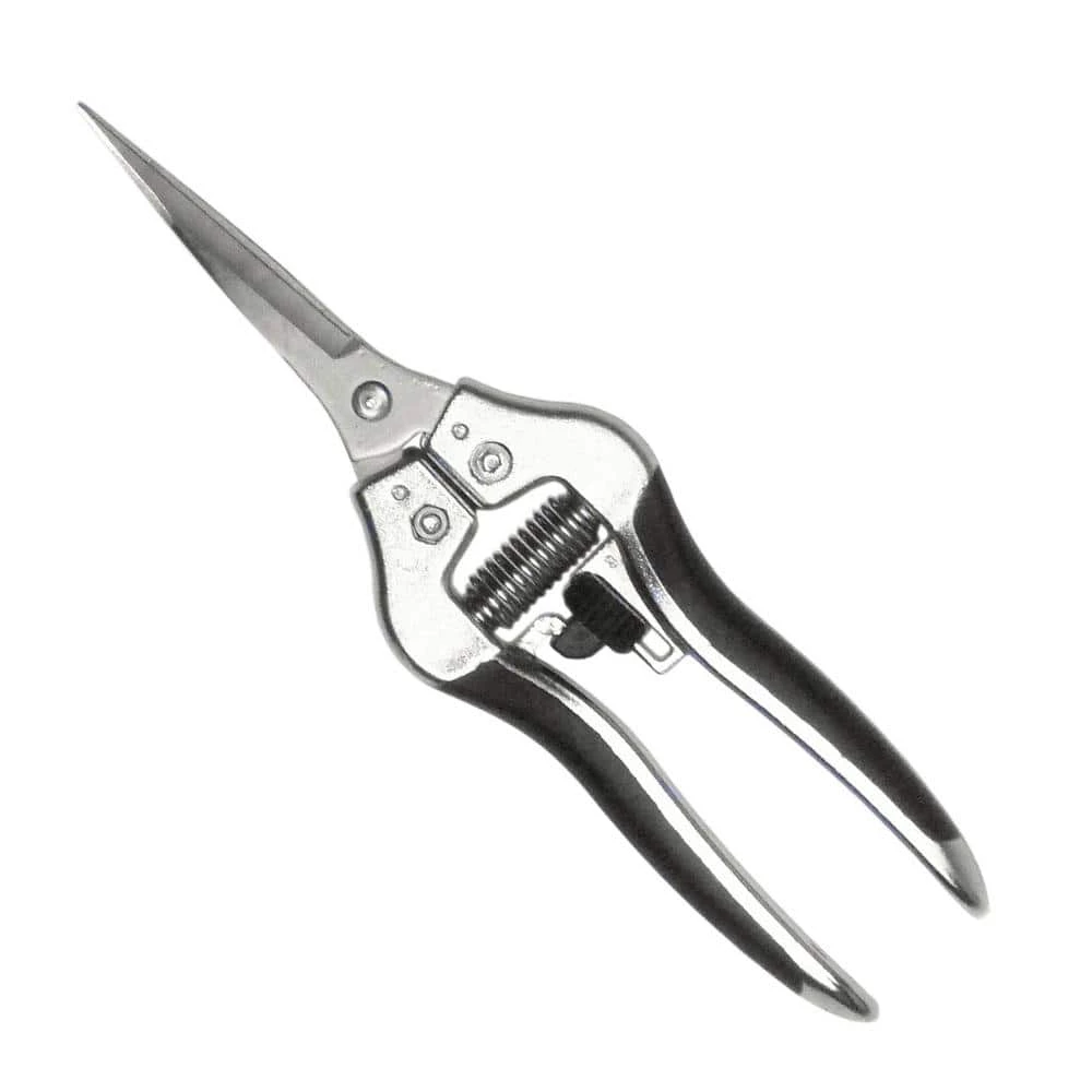 The Ergonomic Deluxe Aluminum series offers a full range of precision fruit, floral and garden shears to fit every need. This A3001SL 8-1/4 in. lightweight shear features extra-long double-ground stainless steel needle nose blades with a micro-tip and sap groove. A center lock with a positive locking catch keeps the shears closed when not in use. The high performance aluminum body reduces weight and ensures a comfortable, ergonomic and non-slip grip.