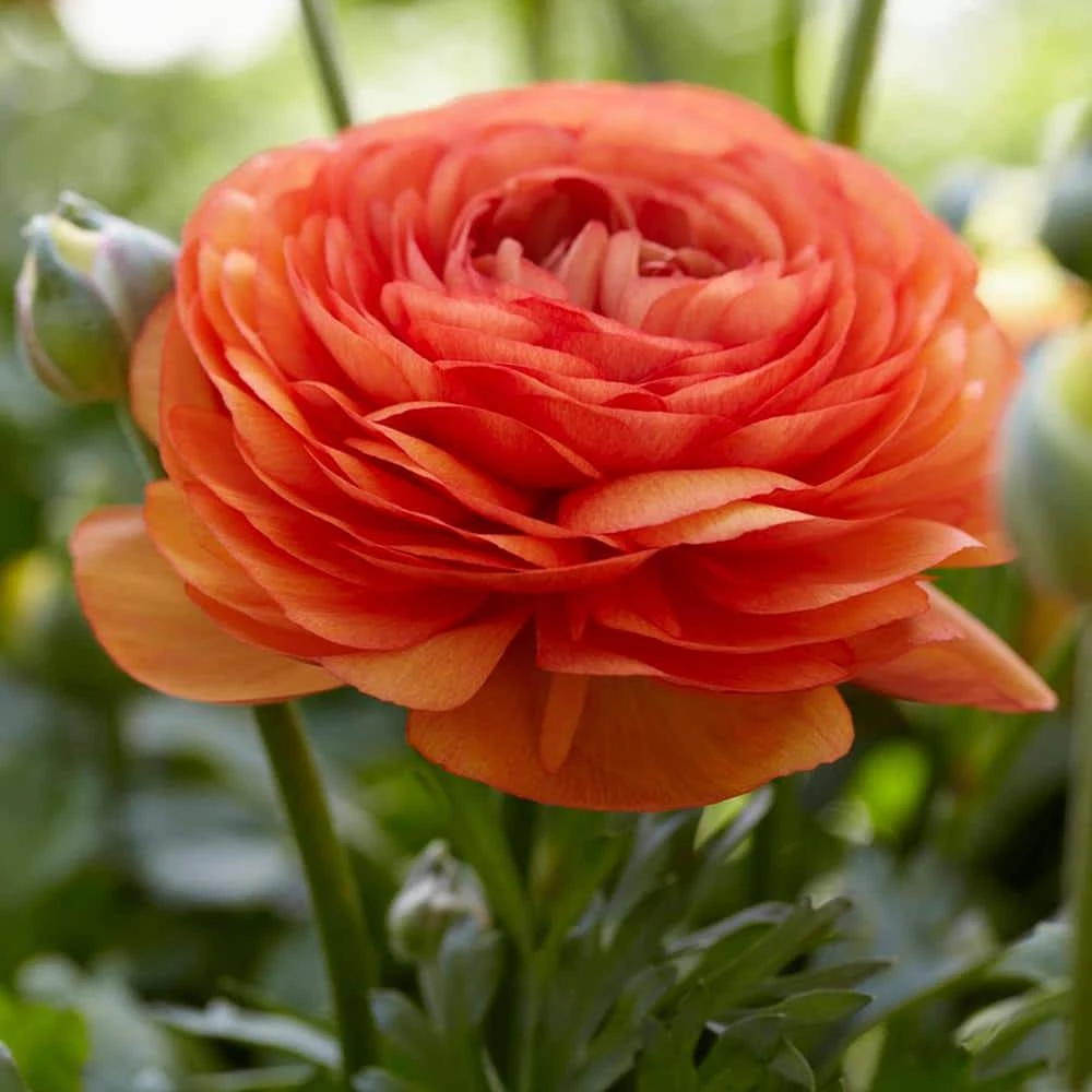 Buttercups are also know by their botanical name “Ranunculus”. The peony, multi-petaled type flowering blooms are extremely vibrant in color and very showy. Good as cut flowers in bouquets. Easy to grow and are deer resistant. Ranunculus bulbs are widely available at retail nurseries and mail-order catalogs in mixed colors. However, ranunculus in single colors are unique and caught our eye, as they make for striking color displays in the garden. We have identified this color to be special. The plants are not very hardy and may be treated as an annual in colder zones but thrive best in USDA zones 8 to 10. Simply replant new bulbs in colder zones or try to over winter them. Soak the corms in luke warm water overnight before planting to jump start development. Plant before danger of frost. Plant the corms with the “claws'” pointing downward.
