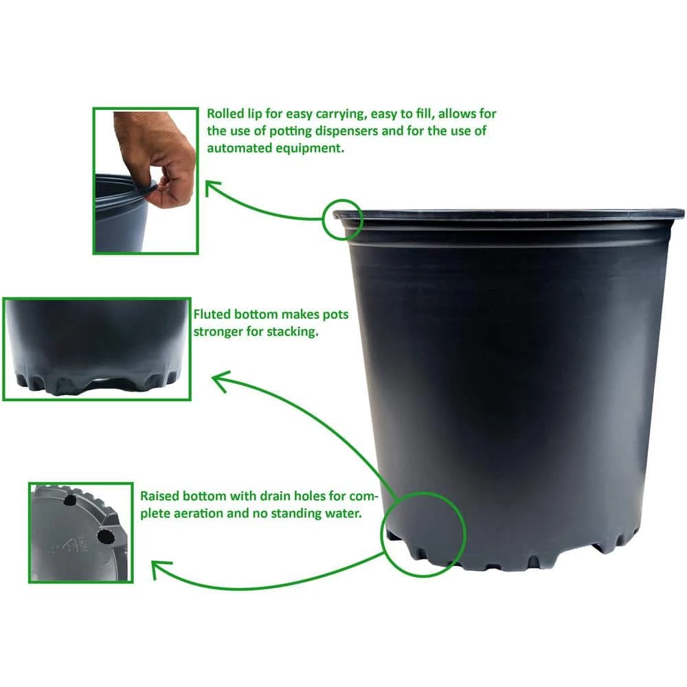 Viagrow 1 Gal. PLUS Nursery Pots (10-Pack) (5.68 LITERS) trade gallon. All Viagrow nursery pots are BPA free and food safe. Round plastic nursery pots are inexpensive and durable perfect for many types of soil or hydroponic growing media such as, coconut coir, vermiculite, perlite, topsoil and many others. Viagrow Nursery Pots are made from recycled HDPE plastic, BPA free and food safe.