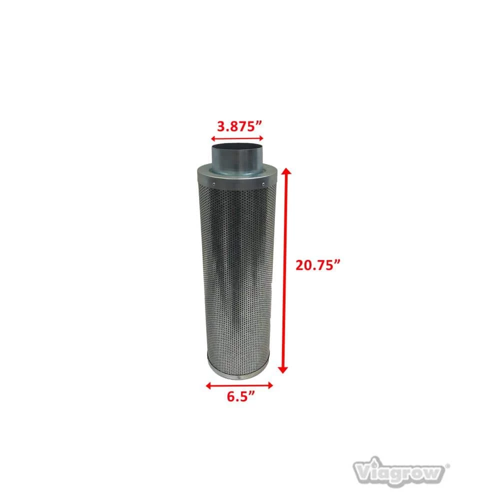 The 4 in. Viagrow Carbon Air Filters remove odors safely and naturally. The virgin activated carbon is the key ingredient for removing all odors organic or chemical – smoke, plant, pet and cooking odors are all absorbed, trapped and held in the highly activated virgin carbon and the pre-filter will catch any dirt or debris allowing the carbon to do its real job. To use attach to a fan for exhausting and you have an instant neutralizing odor eater. Quality constructed with heavy-duty galvanized steel, these filters can be mounted vertically or horizontally. When integrated into your exhaust system, all the air that is pulled through the carbon filter is totally and completely scrubbed clean free of odor. The 4 in. carbon filter 2, is recommended and rated for 55-110 CFM.