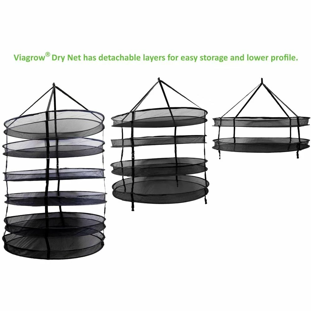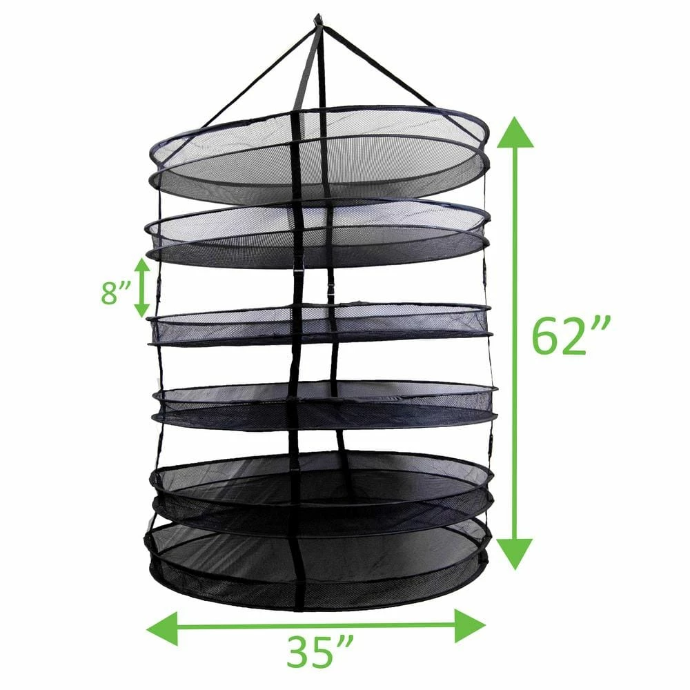The Viagrow collapsible herb drying rack is the perfect accessory for drying plants in any space for any application. This lightweight, open air drying rack comes with six 35 in. diameter detachable levels and collapses neatly when it is not in use into the accompanying zip-up carrying bag. To assemble, simply unfold the Viagrow collapsible herb drying rack levels to their full 35 in. diameter and connect the six levels for up to 71 in. of drying space. These units are perfect for a closet space or a grow tent.